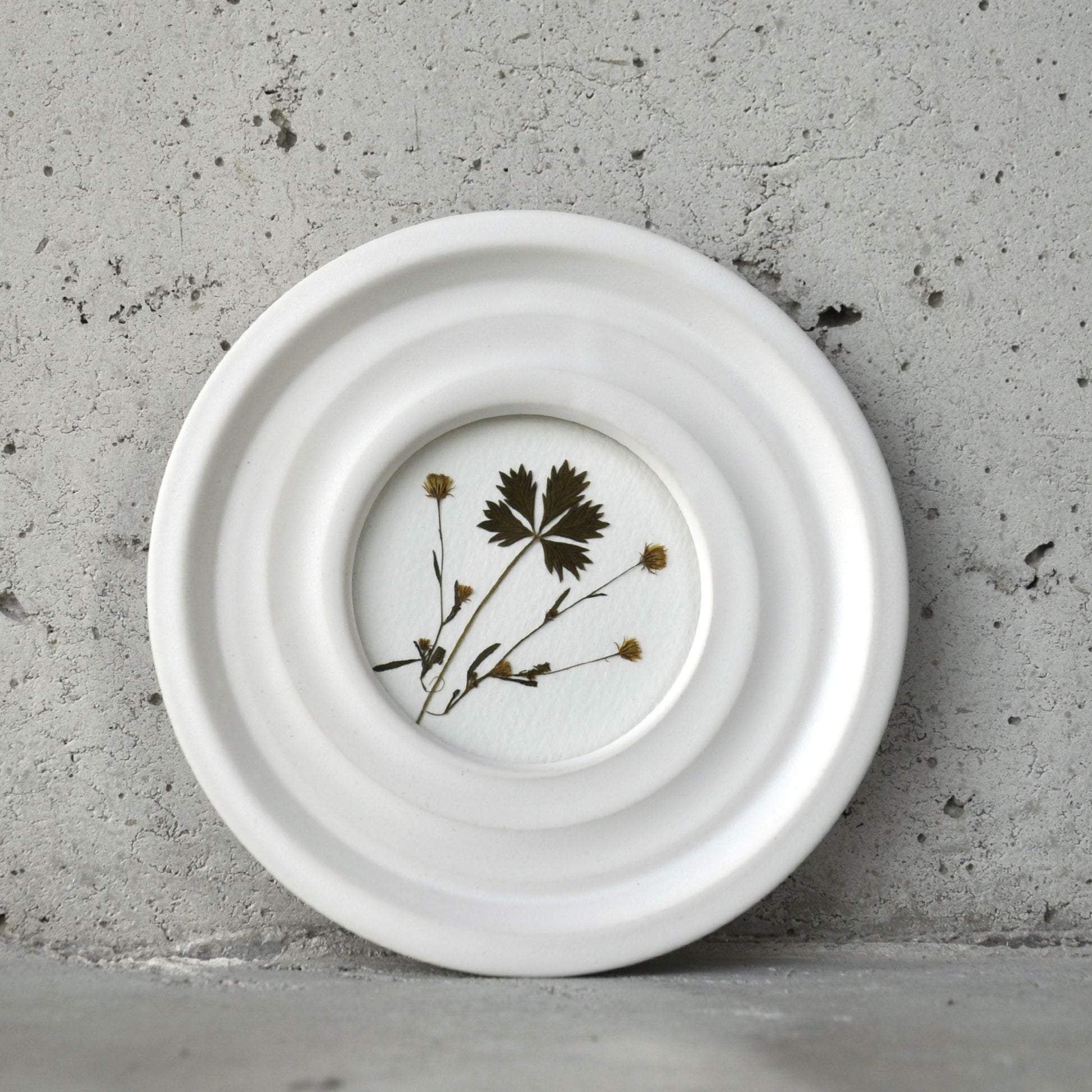 Obrazek z naturalnych suszonych roślin wykonany w technice Oshibana, oprawiony w ceramiczną ramkę. Zabezpieczony szkłem.